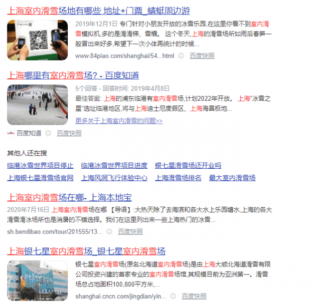 When SEOers say “keyword” they are actually referring to a series of words together, such as “上海室内滑雪” (Shanghai indoor skiing). Notice that in Chinese, there’s no space between the words.