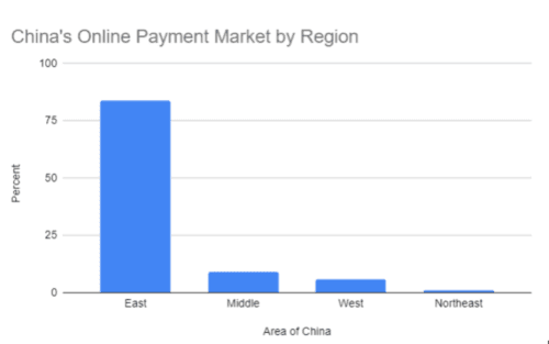 China’s online payments market can be broken down by economic region.