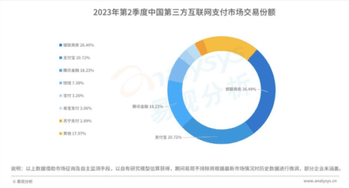 For example, another source shows UnionPay has the highest share of transactions (26%), with Alipay (21%) and Tencent Pay (18%) rounding out the top three.