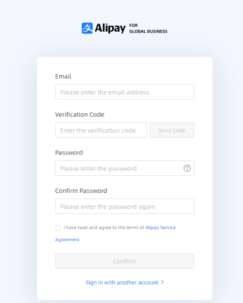 Head over to Alipay Global’s website and fill out the following information.
