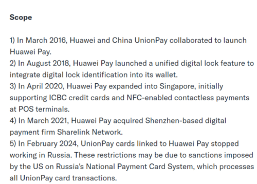 We previously mentioned Huawei’s relationship with other payment services.
