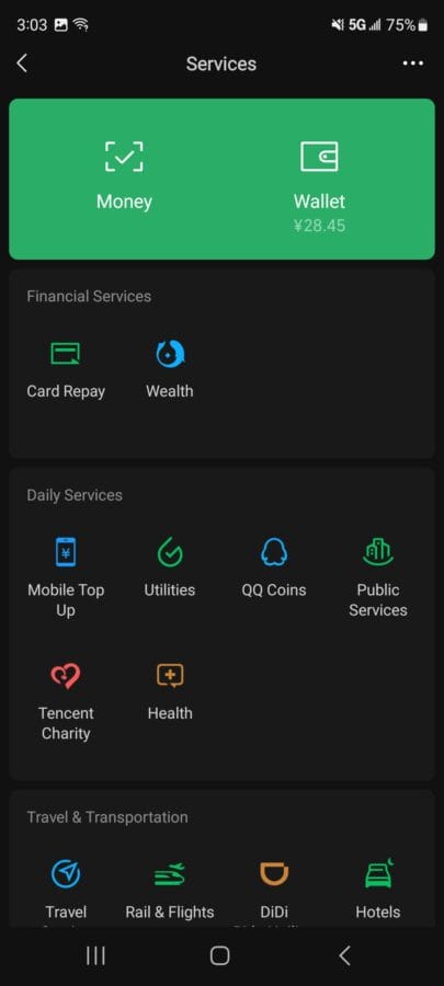 As you can see in the image above, WeChat Pay, like Alipay, allows users to pay for several different services.