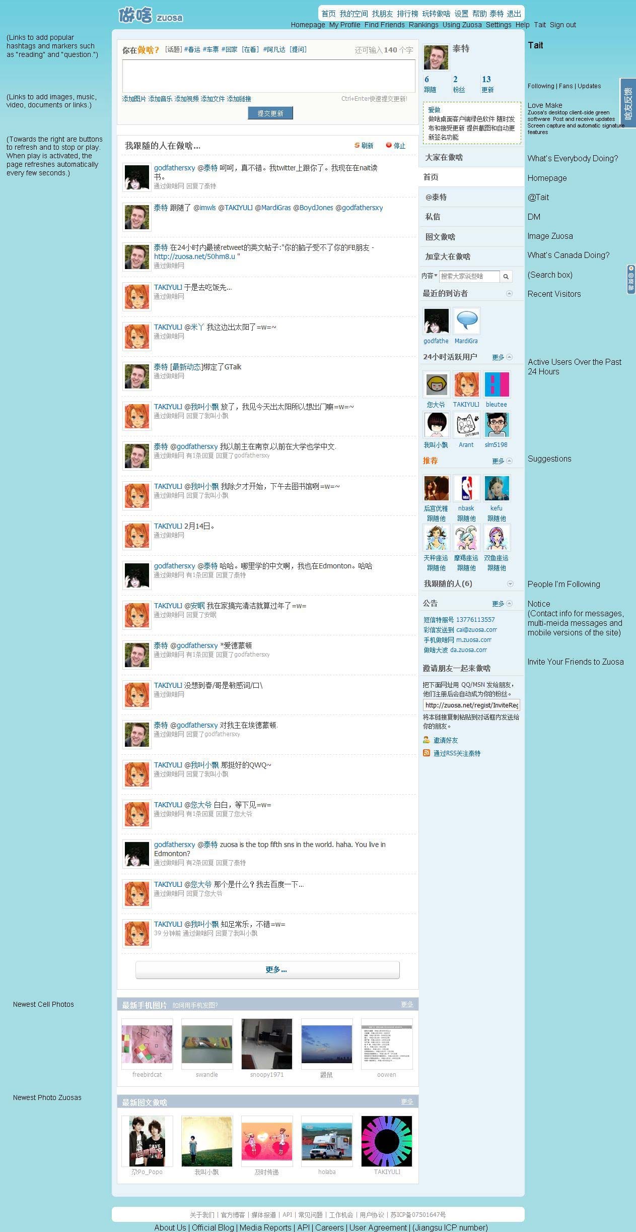 Above the entry, the box is suggested hashtags such as “Avatar” and “Train Tickets” which I assume are some of the most popular hashtags at the moment. Since Zuosa users are going to be new to micro-blogging and have not likely used Twitter, this is probably there to teach new users.