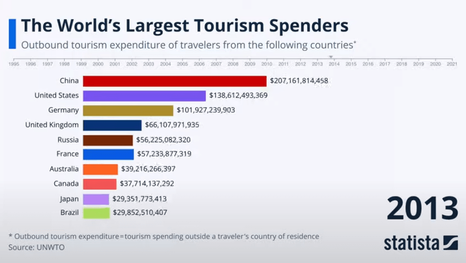 The website Statista reported that “outbound tourism spending by Chinese travelers increased more than tenfold between 2006 and 2019.”