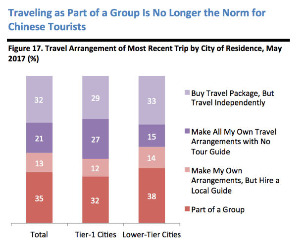 An increasing number of people are beginning to prefer more independence on their trips, which could be due to the younger generation being more exposed to foreign media at home, or Western culture after studying abroad.