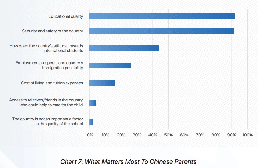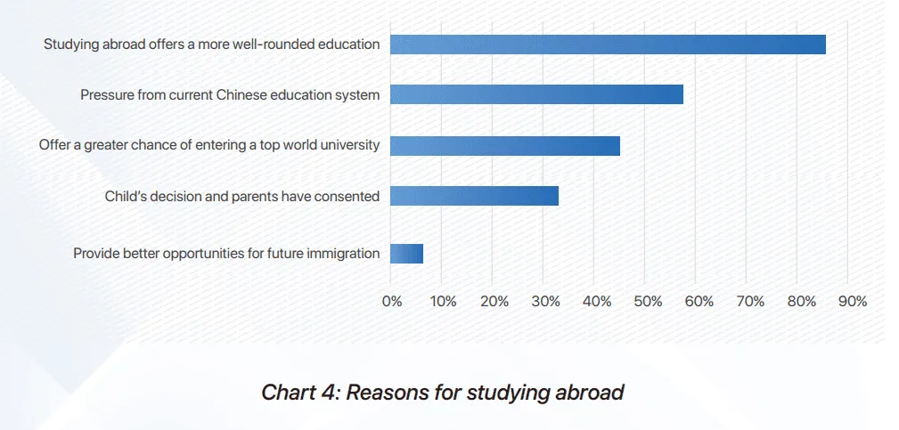 From a broader view, Chinese parents have provided their top reasons for wanting to send their children abroad.