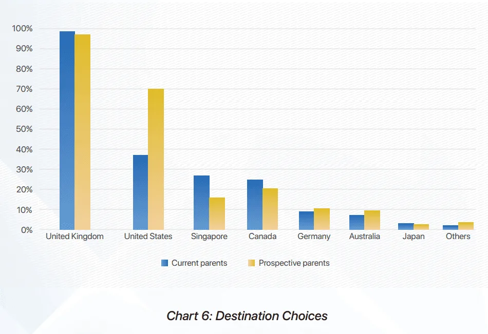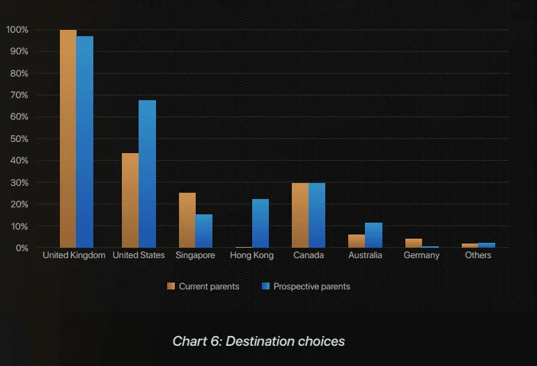 - What countries are Chinese parents looking to send their children to in 2025, and why?