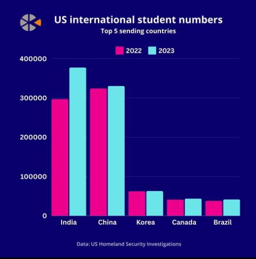 According to the above chart, the US is the number one destination for undergraduate programs and below. Although India surpassed China as the #1 source of international students in the US, China is still a close #2.