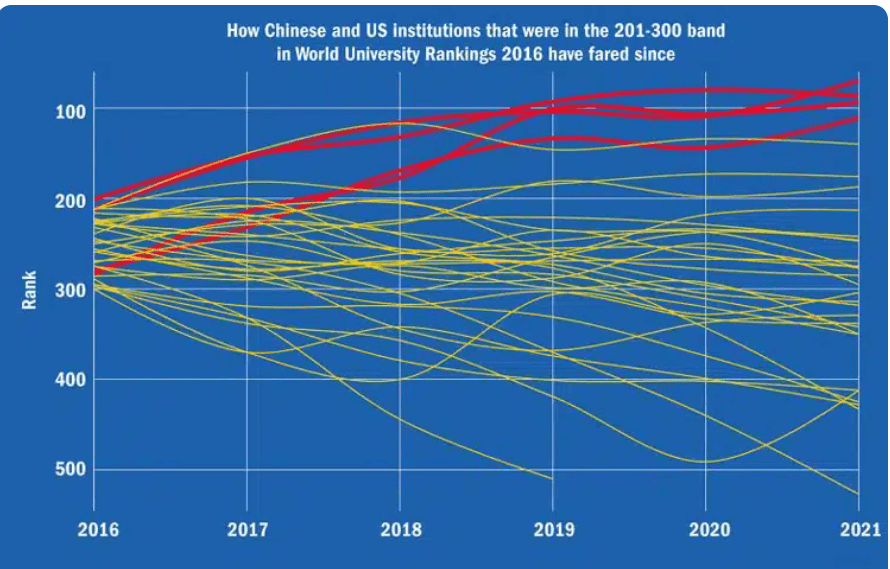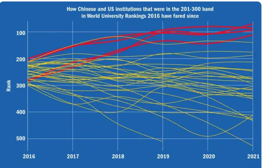 Over the past few decades, US schools have benefitted from the perception that the US was a world leader and a country where workers could earn higher salaries than anywhere else, and this was enhanced due to China’s position as a developing country.