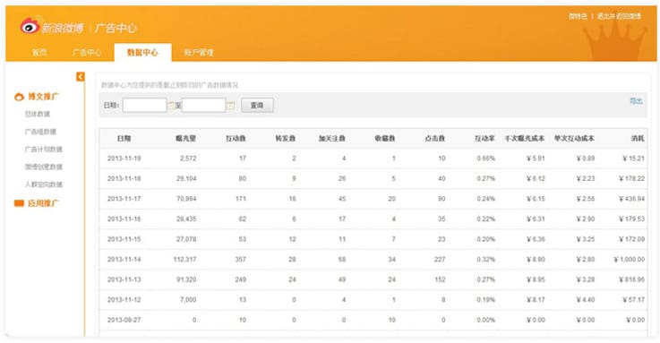 Weibo provides useful tracking options that are updated regularly. Monitor the results to watch out for irregularities.