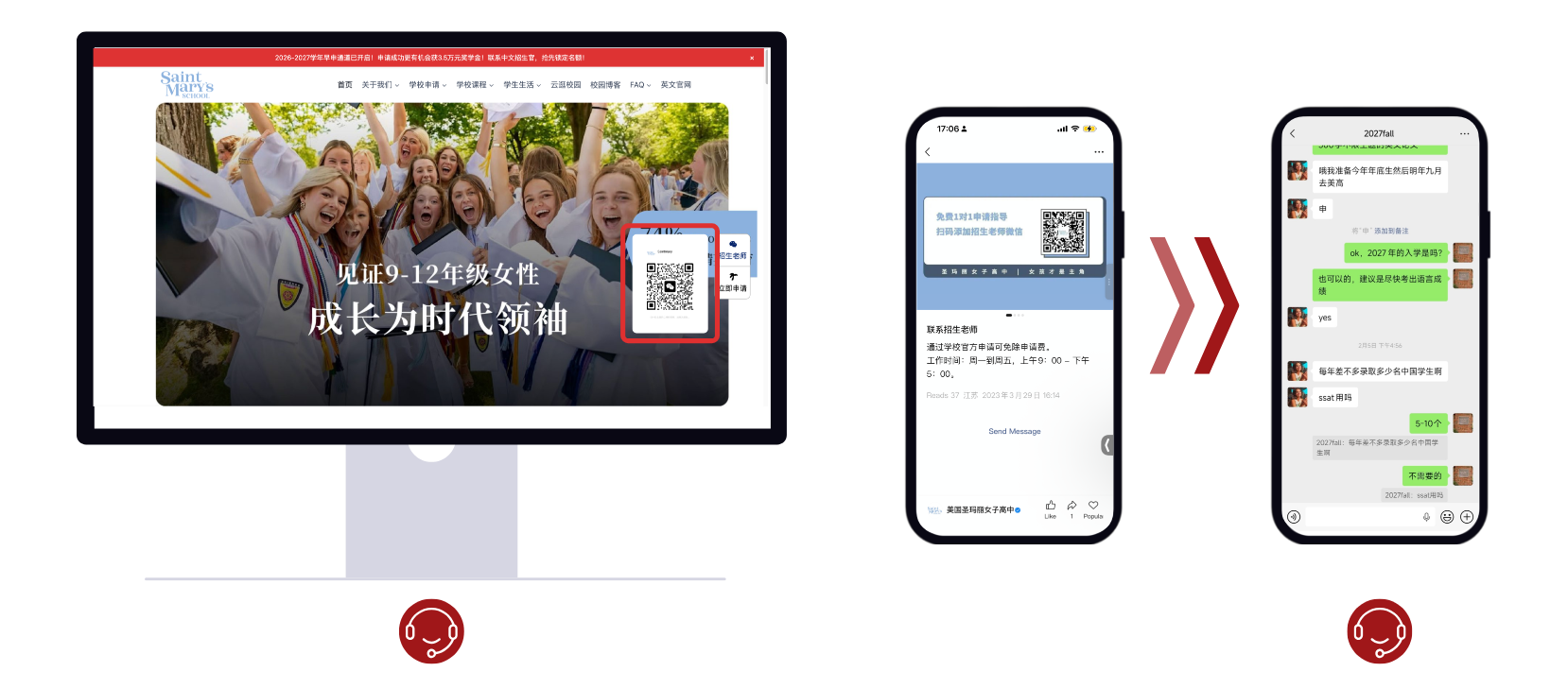在中国市场,家长和学生在做出入学决定前通常需要多轮沟通。除了内容营销外,我们还专注于教育咨询和处理微信咨询。我们还:
