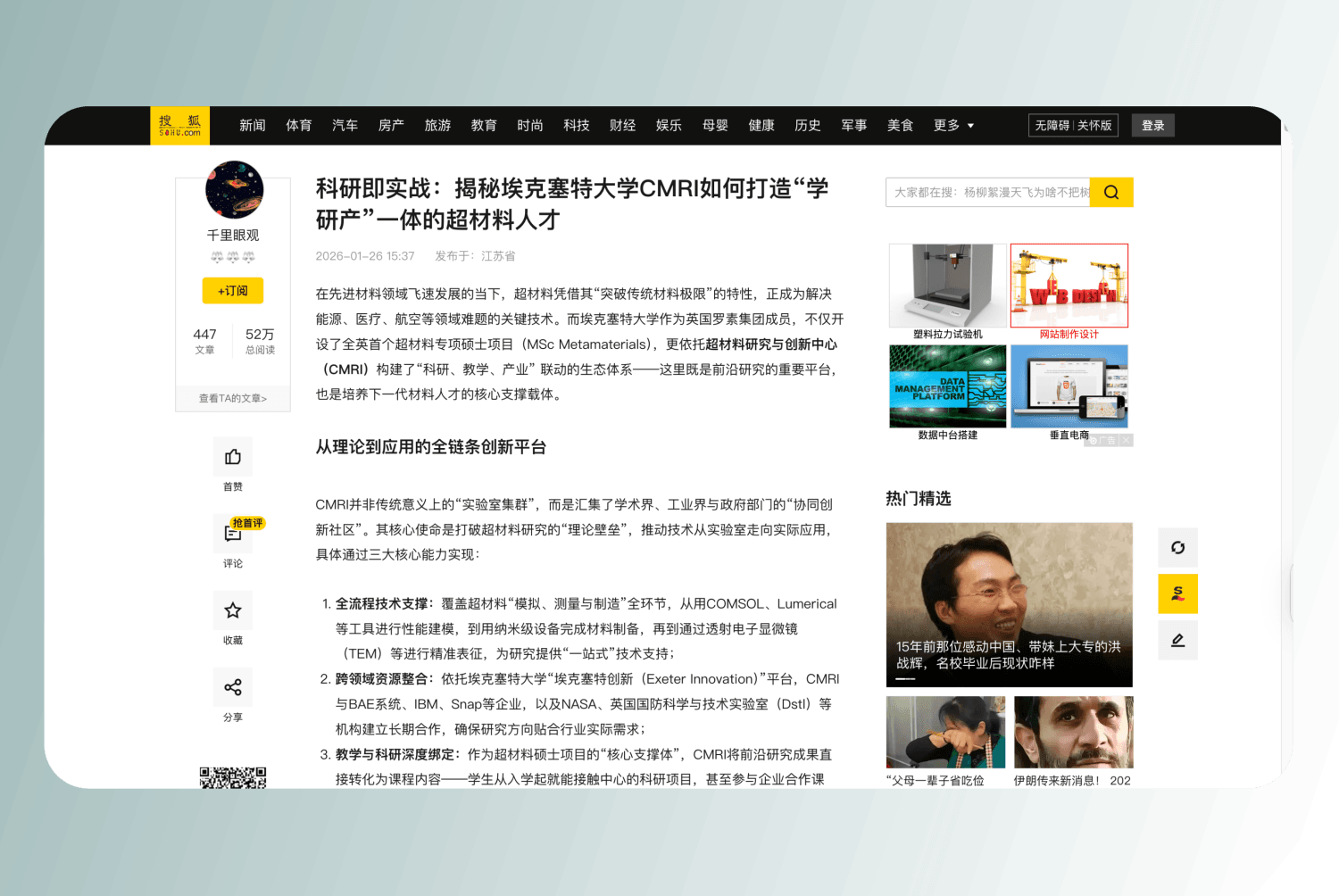 Nanjing Marketing Group supported its 2026 MSc Metamaterials program (a highly specialized STEM field subject) with a structured search content strategy for the Chinese market.