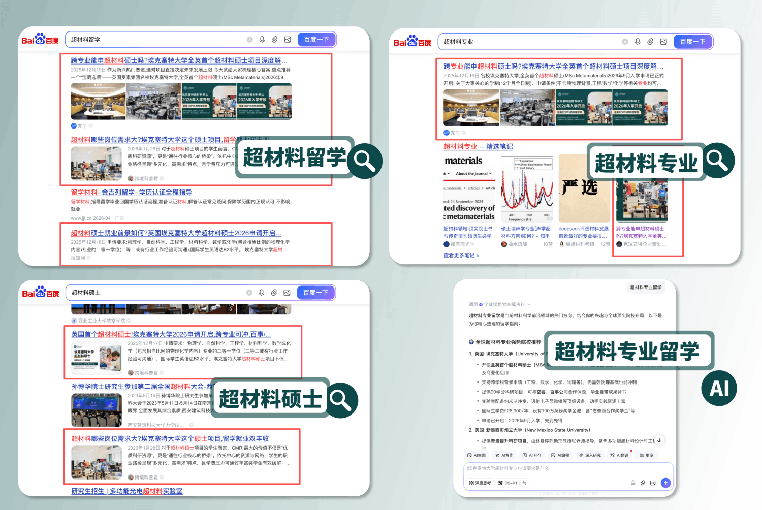 During Baidu keyword research, we found that high-quality Chinese content related to “MSc Metamaterials” was extremely limited.